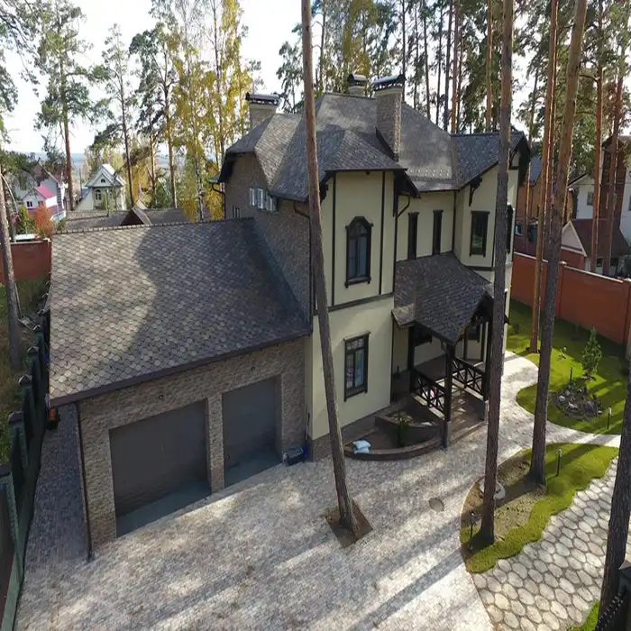 Гибкая черепица может применяться не только на малоэтажных жилых зданиях, но и при строительстве административных, жилых многоэтажных и других типов зданий.